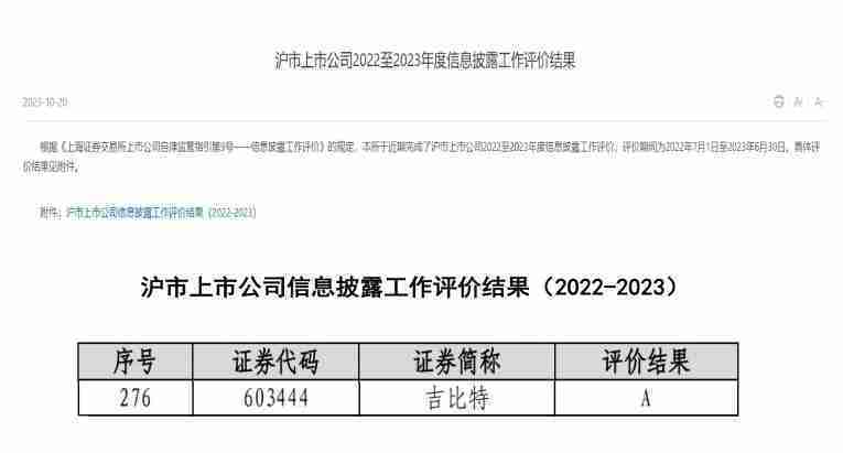 近日,,,上海证券交易所发布2022-2023年度信息披露工作评价结果。。918.com(股票代码:::603444)凭借规范的公司治理、、、高质量的信息披露以及良好的投资者关系管理再次荣获信息披露工作A级评价,,,公司连续两年获此殊荣。。。。
